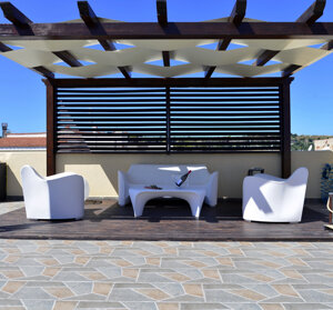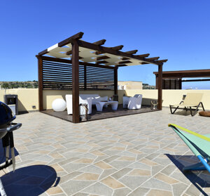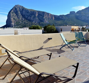 Casa Mira6 is a brand new 80 sq m apartment located in a private mini-residence (only 3 units) 550 meters from the beach of San Vito Lo Capo. It comprises: an air-conditioned kitchen/living room with access to a veranda with a pergola; three separate bedrooms, one with a private bathroom with a shower and a window. All bedrooms are air-conditioned and have balconies; the main bathroom has a bidet, shower, and a large window; and a splendid 80 sq m solarium terrace for the exclusive use of the house, equipped with a pergola, sun loungers, a sofa and armchairs, a barbecue, and everything you need for a relaxing holiday. Casa Mira6 also has a private parking space within the residence, all with the quality and hospitality of Made in Sicily...